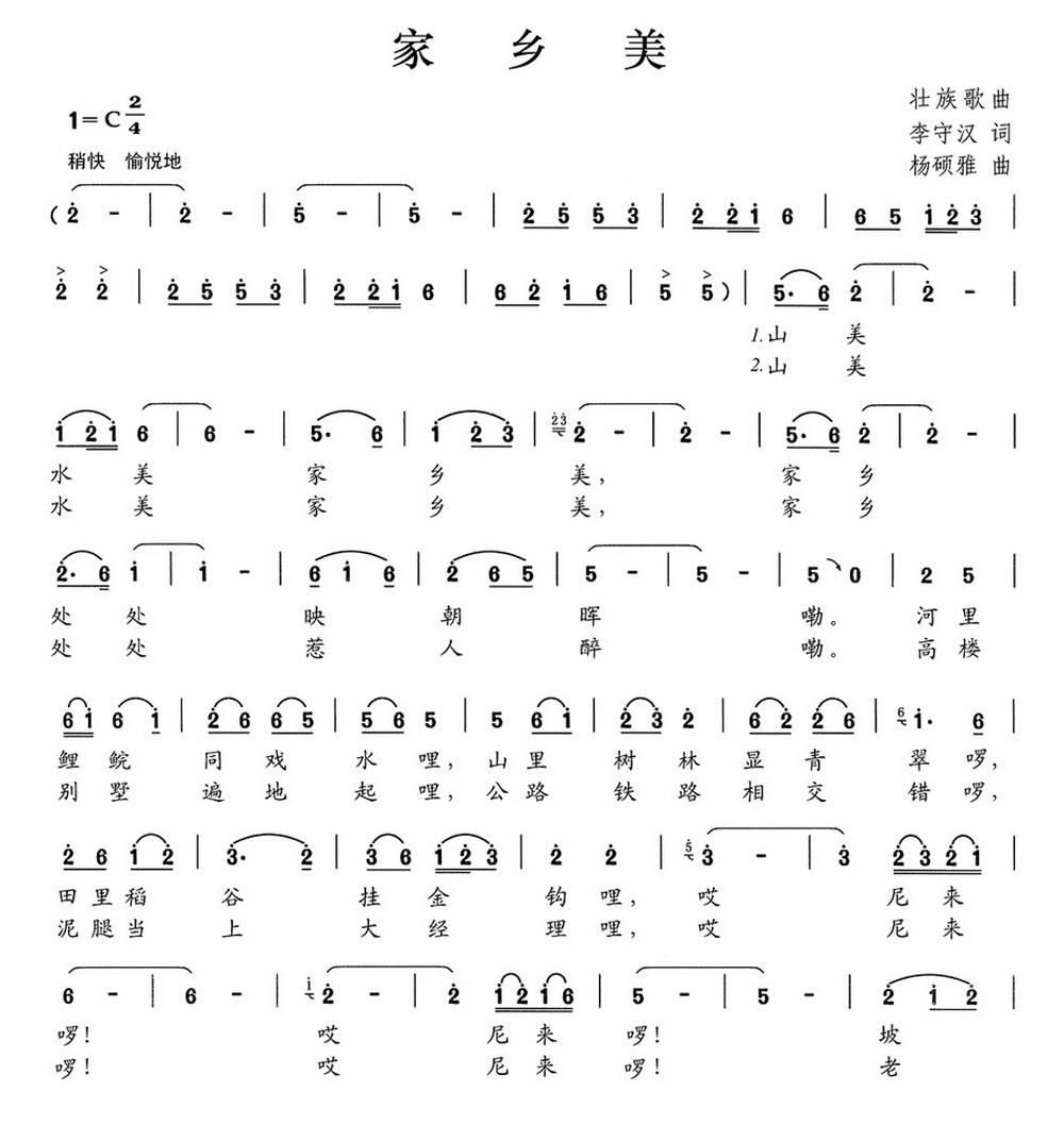 - [歌谱] 家乡美