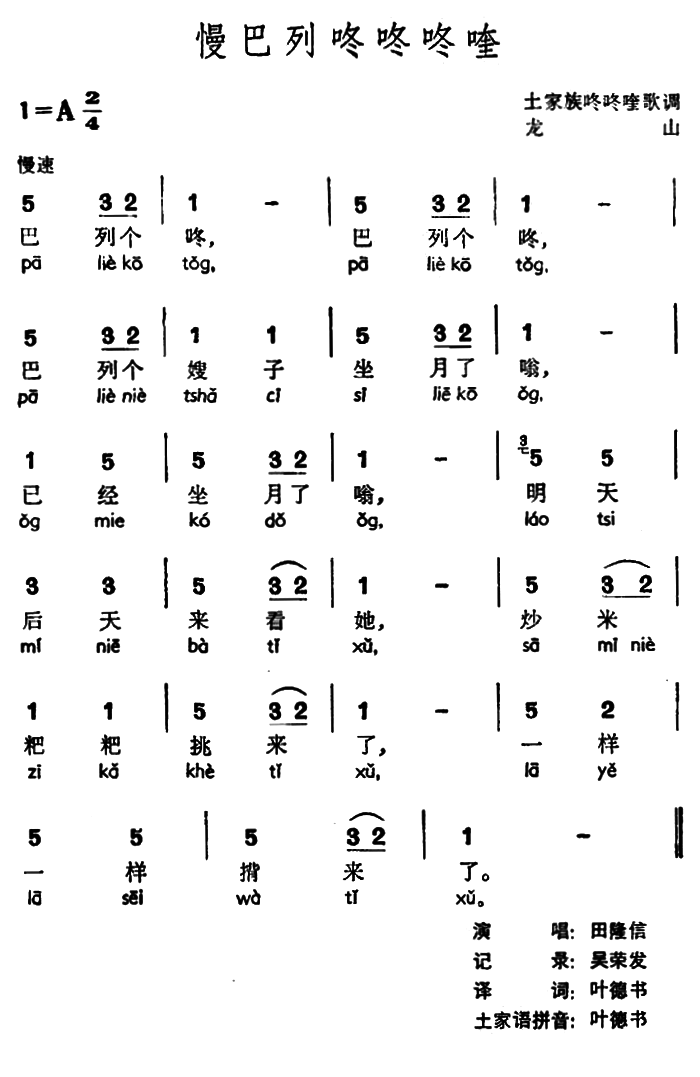 > 慢巴列咚咚咚喹 土家族咚咚喹歌调