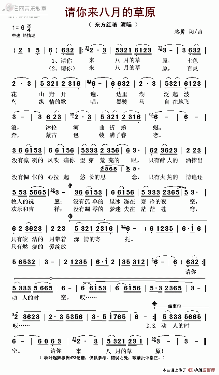 > 请你来八月的草原 东方红艳