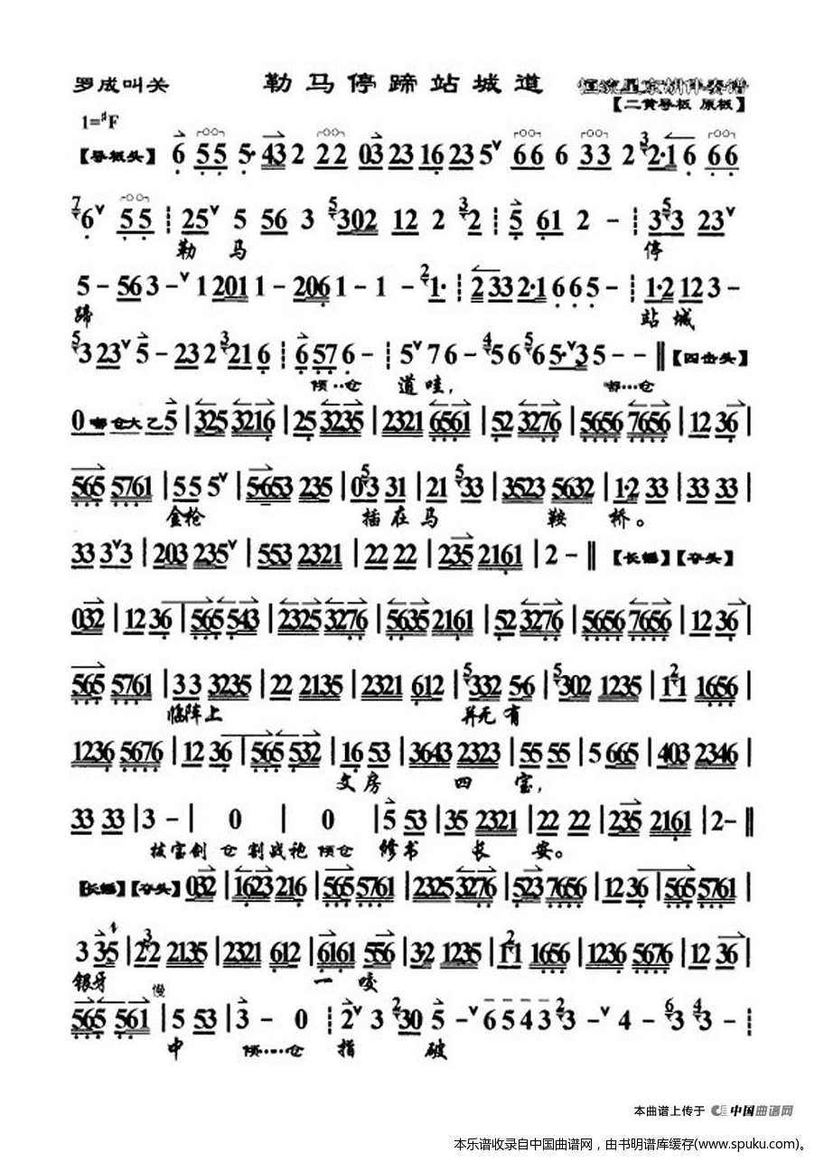 勒马停蹄站城道 罗成叫关 选段 琴谱