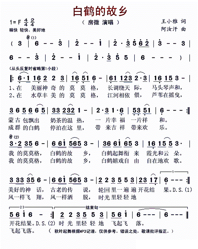 - [歌谱] 遥远的故乡 斯琴朝克图曲