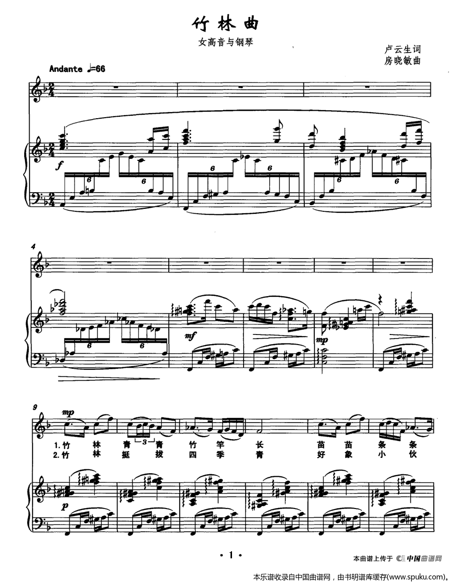 竹林曲 女高音 钢琴