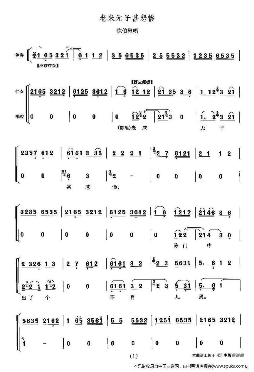 老来无子甚悲惨 打侄上坟 陈伯愚唱段 唱谱