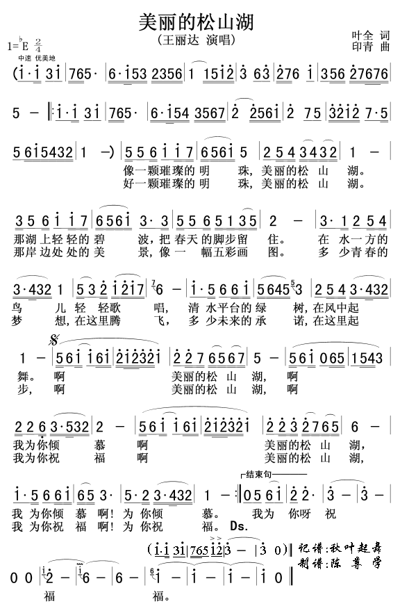 - [歌谱] 美丽的松山湖 王丽达