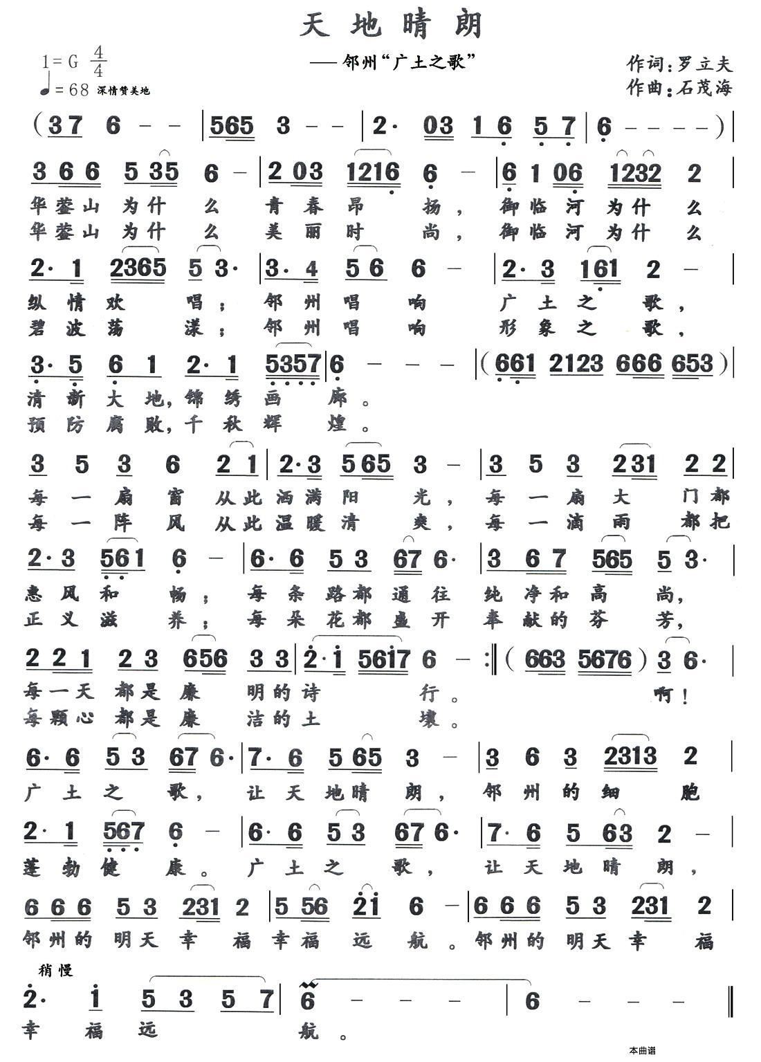 - [歌谱] 天地晴朗