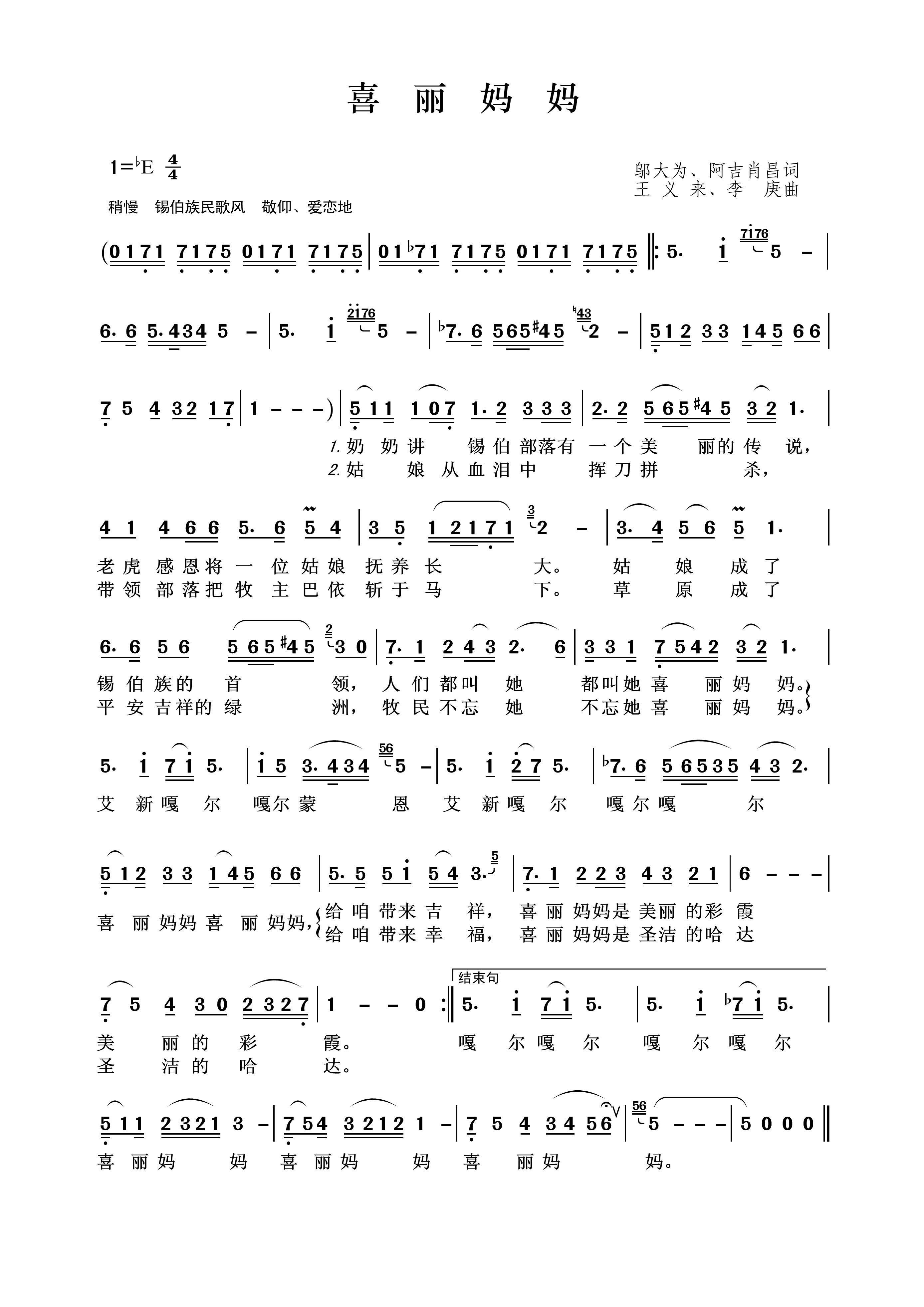 - [歌谱] 喜坏我的妈妈哎 湖北民歌