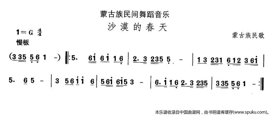 > 中国民族民间舞曲选 八 蒙古族舞蹈 沙漠的春 乐器谱