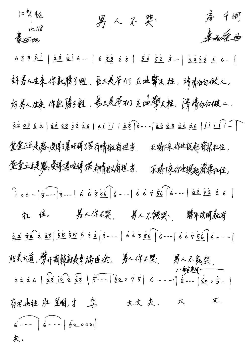 - [歌谱] 男人不哭