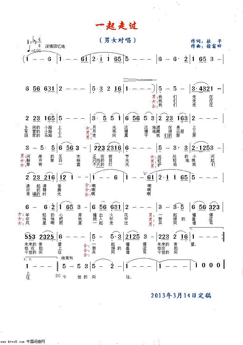 - [歌谱] 一起走过 对唱版