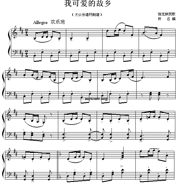 > 民歌钢琴小曲 独龙族民歌 我可爱的故乡