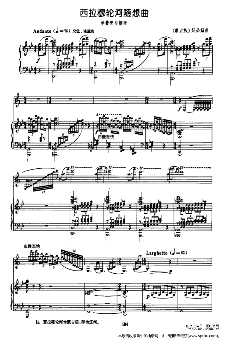 - [单簧管谱,钢琴谱] 西拉穆轮河随想曲 单簧管独奏 带钢琴伴奏 1