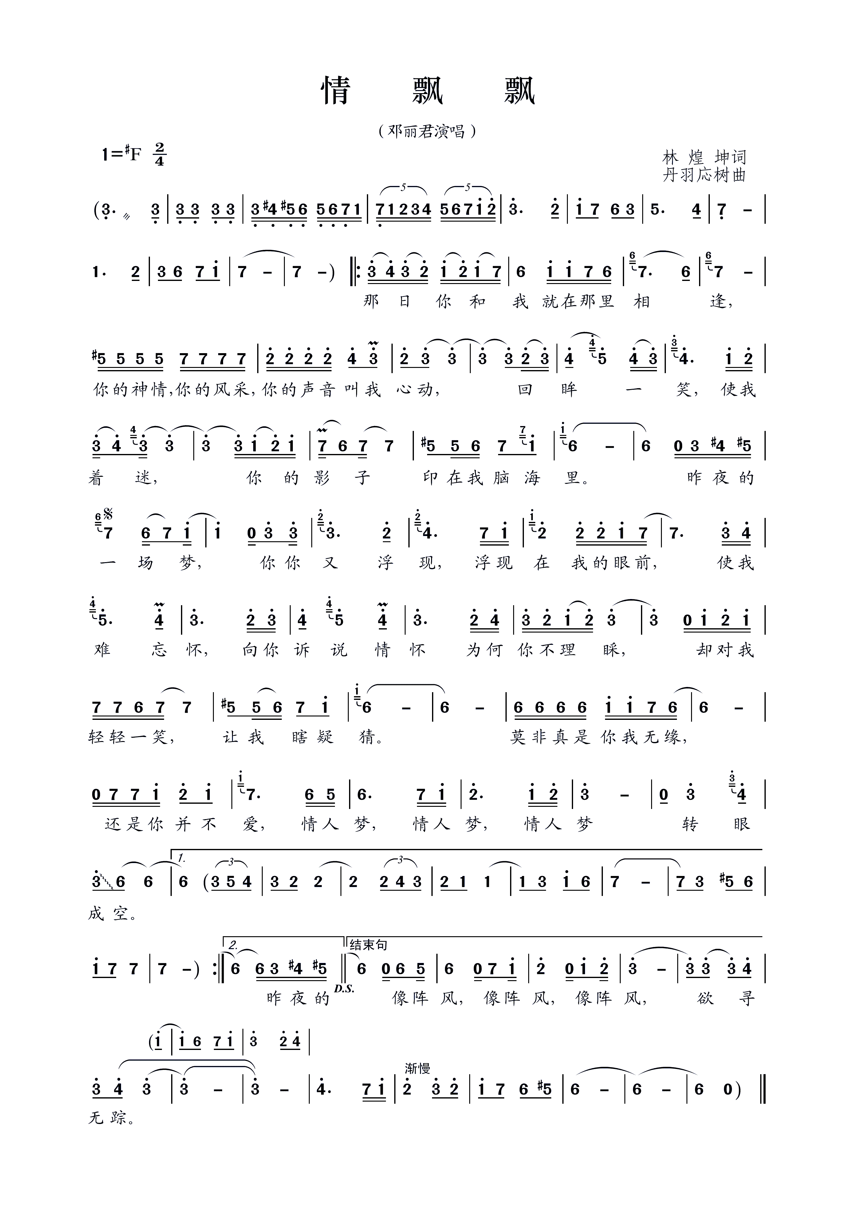 - [歌谱] 情飘飘