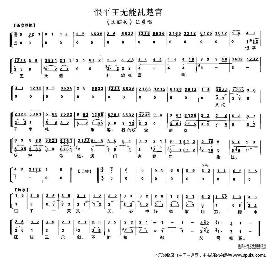 恨平王无能乱楚宫 文昭关 伍员唱段 琴谱 京剧戏谱