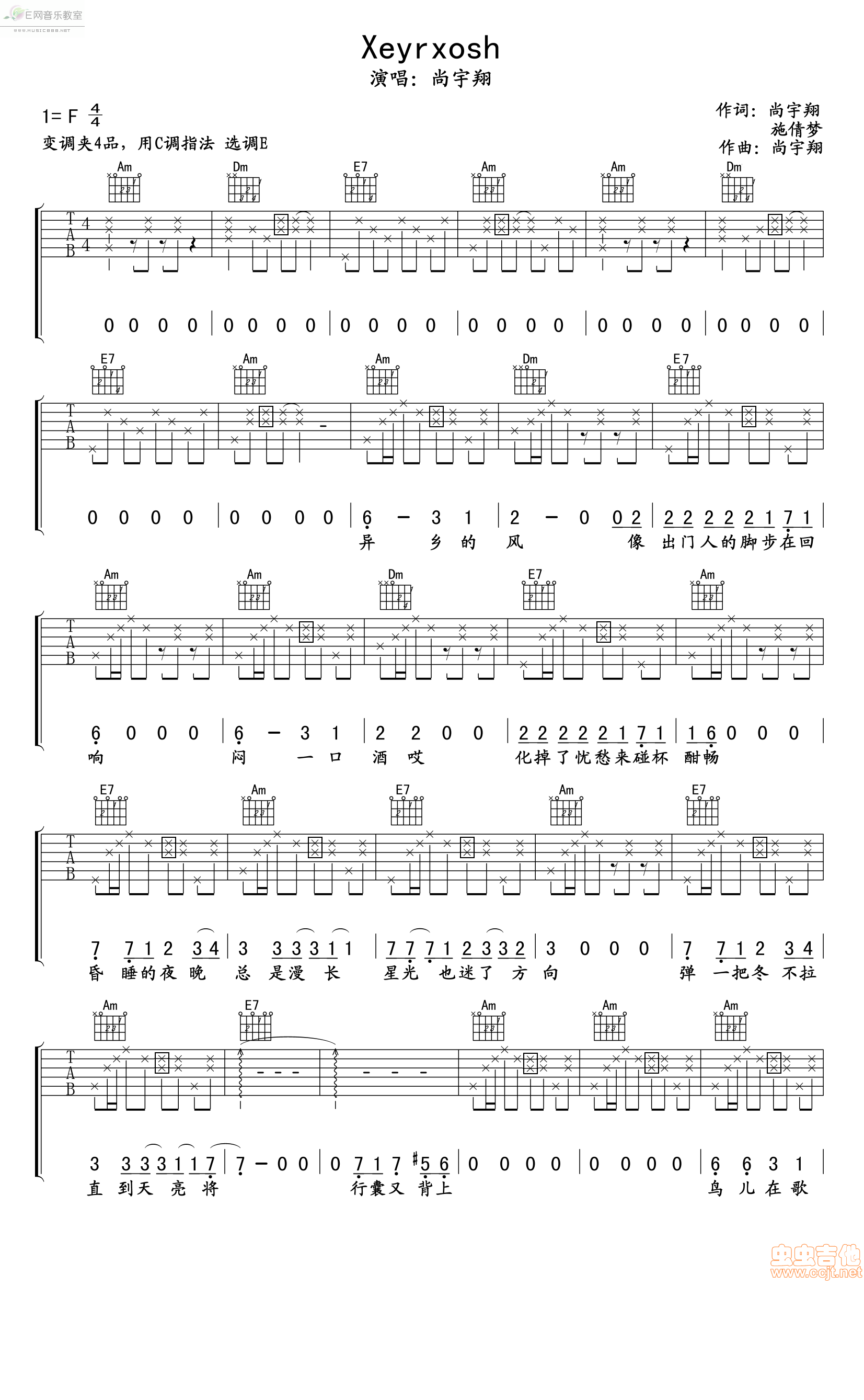 xeyrxosh 简易版弹唱谱 流浪的赶脚