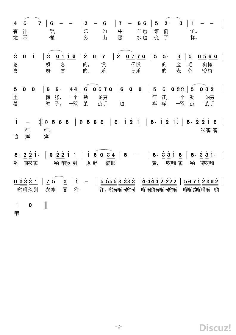 - [歌谱] 待到山青水锦绣 民族音乐