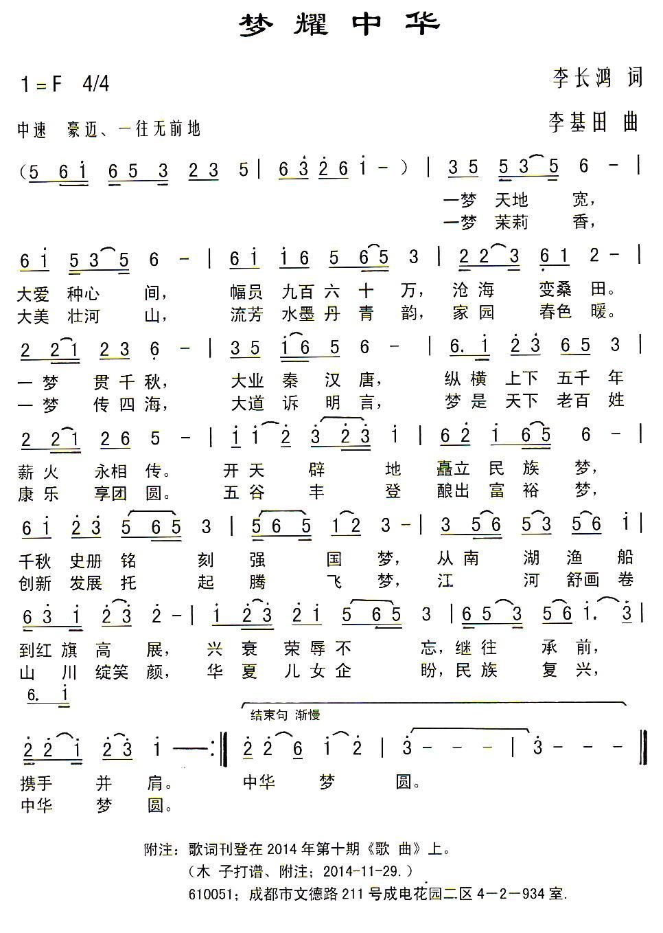 - [歌谱] 央视马年春晚新歌选 天耀中华