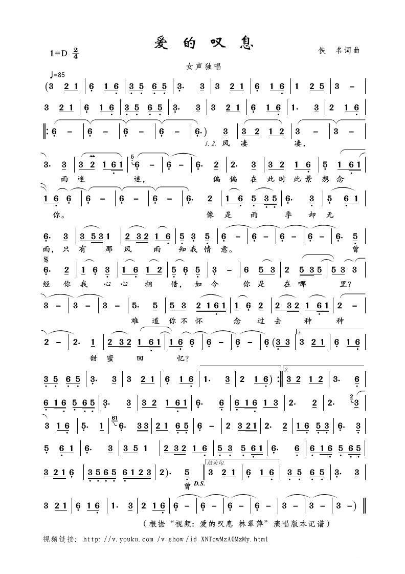 > 爱的叹息 女声独唱