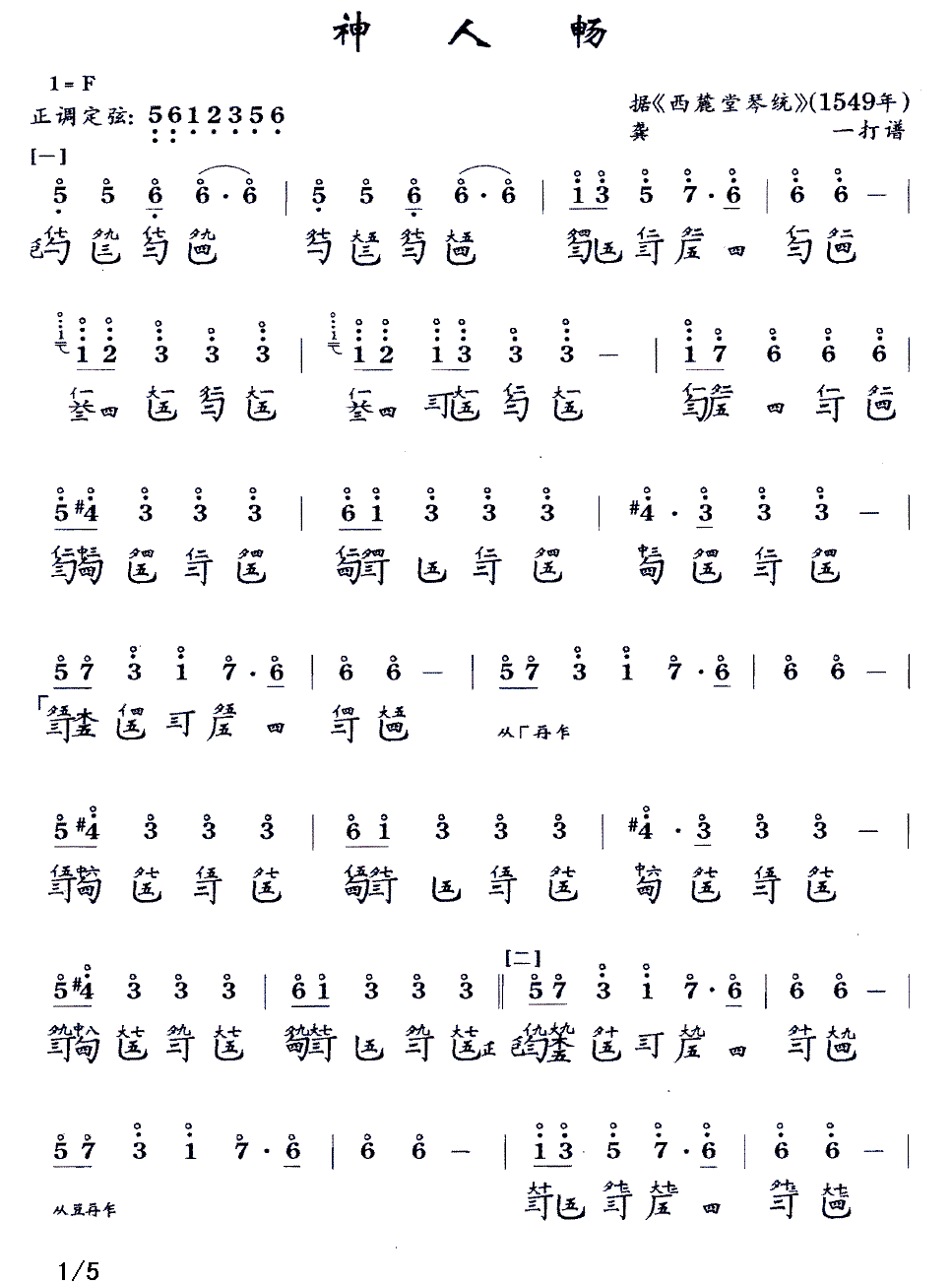 > 神人畅 古琴谱 减字谱