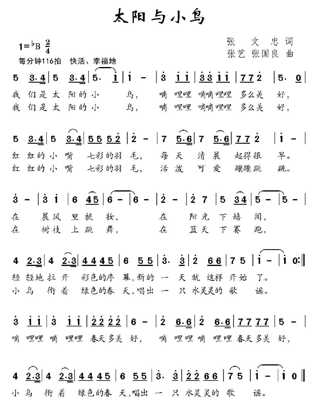 - [歌谱] 儿歌 太阳小鸟夸奖我