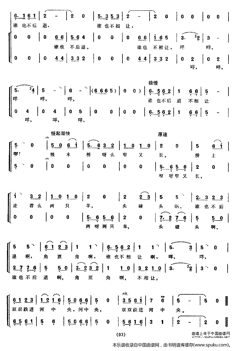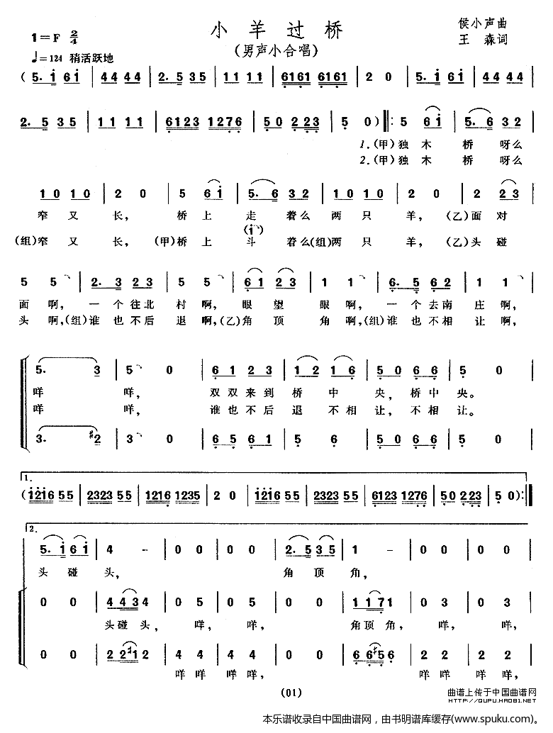 小羊过桥 男声小合唱 合唱谱