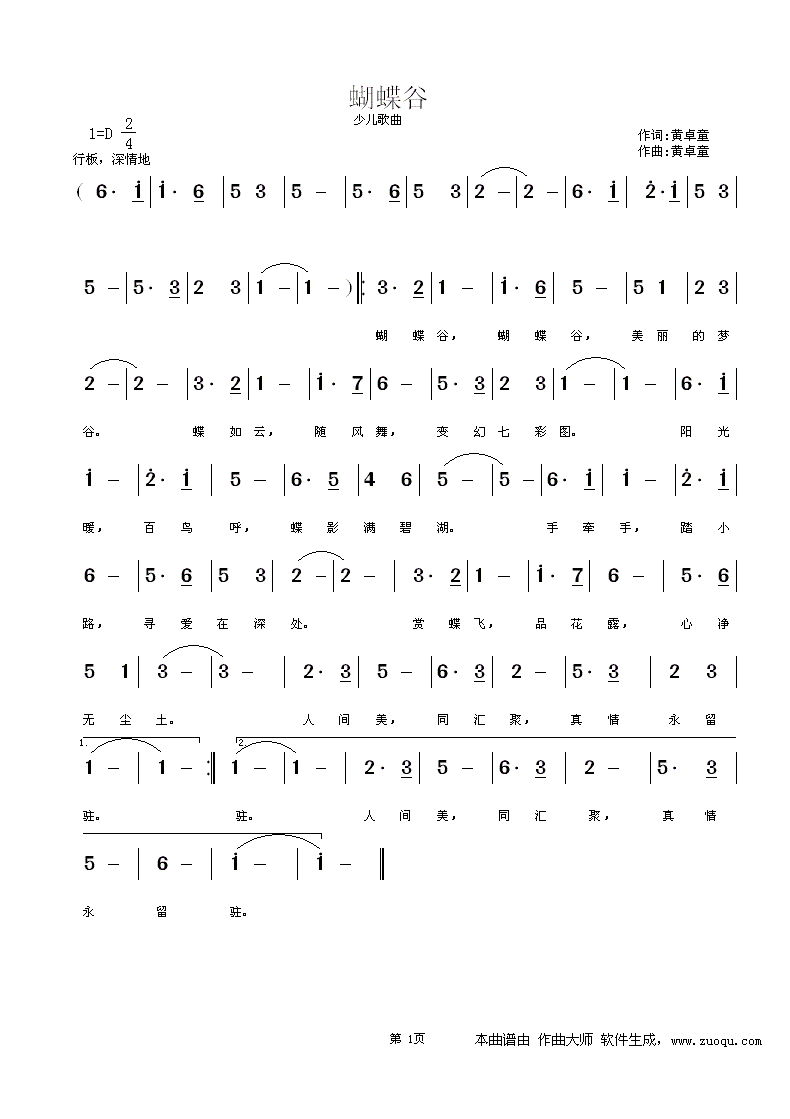 - [歌谱] 踏青蝴蝶谷 女声独唱