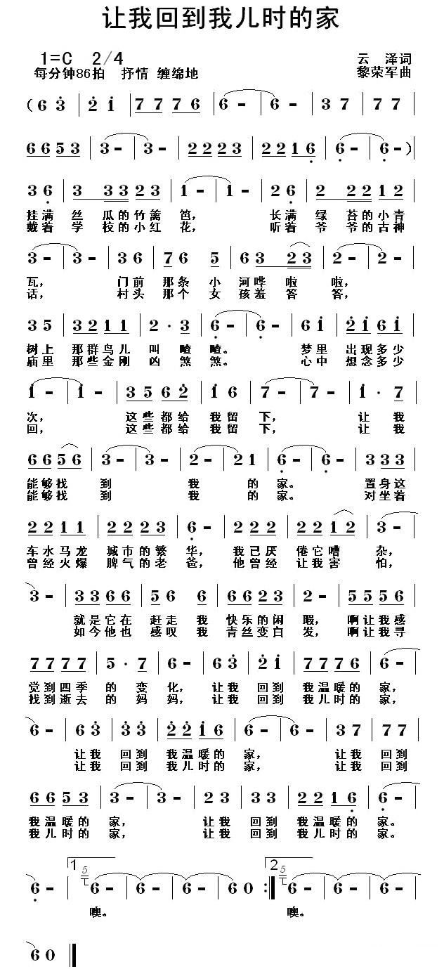 - [歌谱] 让我回到梦里 情之缘 片尾曲