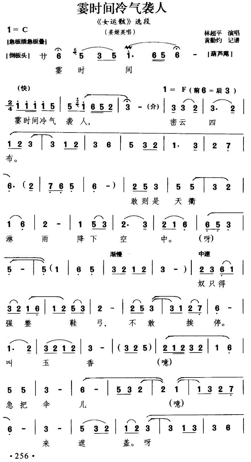 霎时间天地旋站立不稳 胭脂河 选段 琴谱