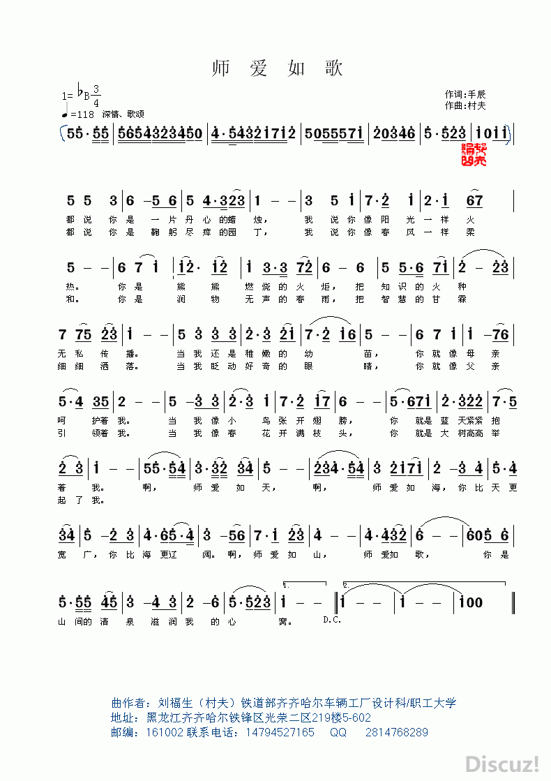 - [歌谱] 师爱如歌 黄清林曲