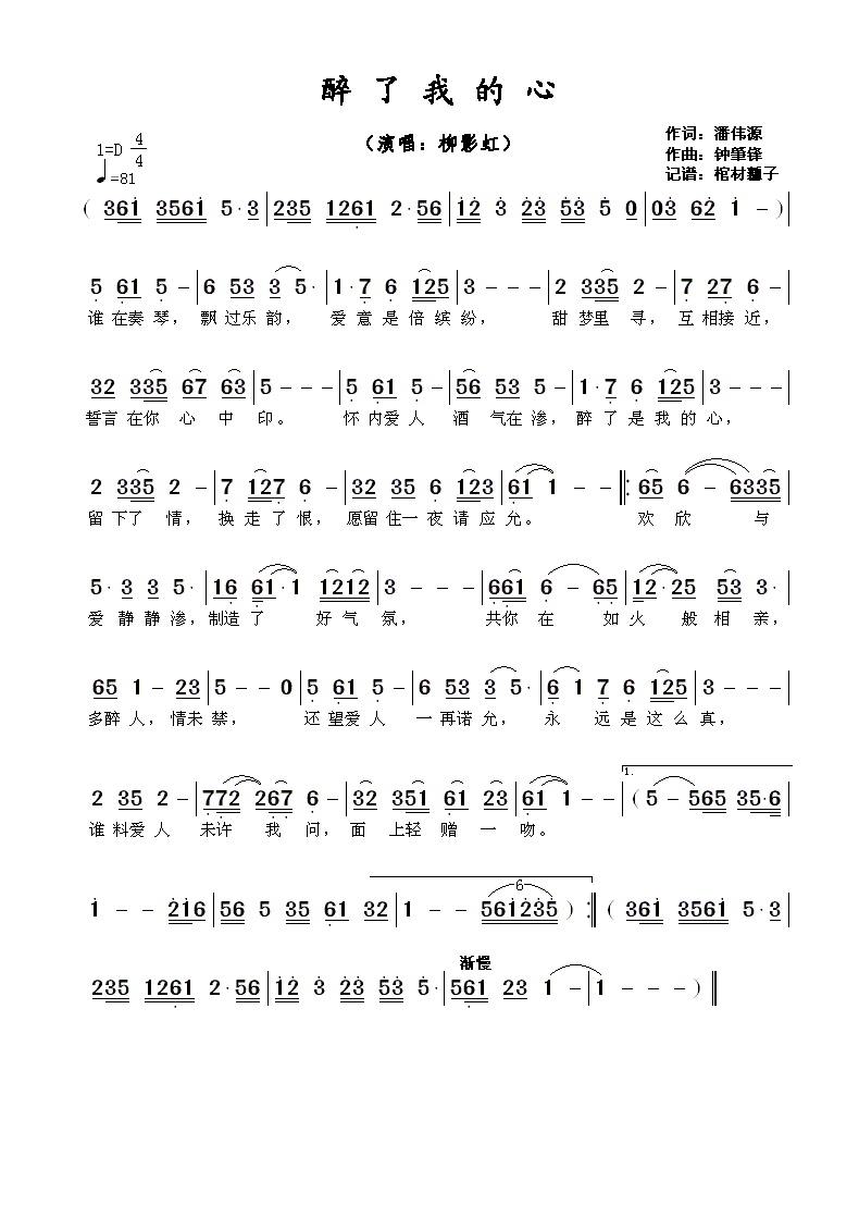 - [歌谱] 甜言蜜语