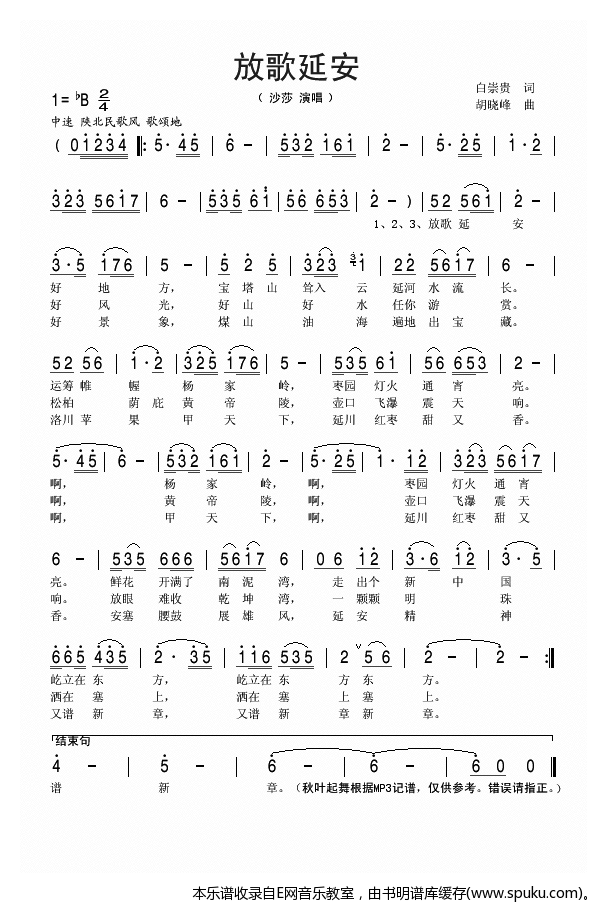 - [歌谱] 放歌延安 沙莎