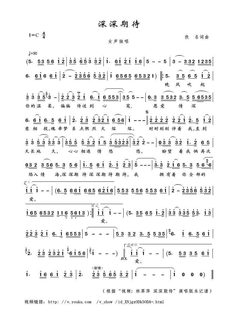 - [歌谱] 深深期待 女声独唱