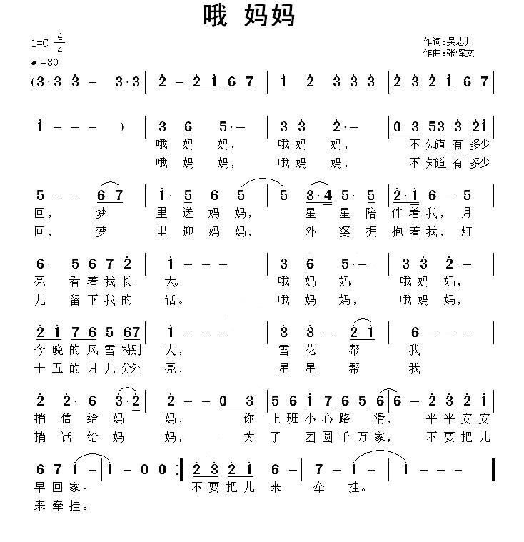 - [歌谱] 哦 妈妈