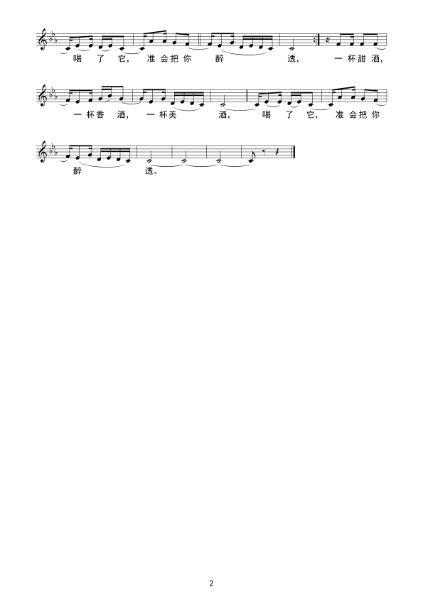 - [歌谱] 一杯美酒 乌兹别克族民歌