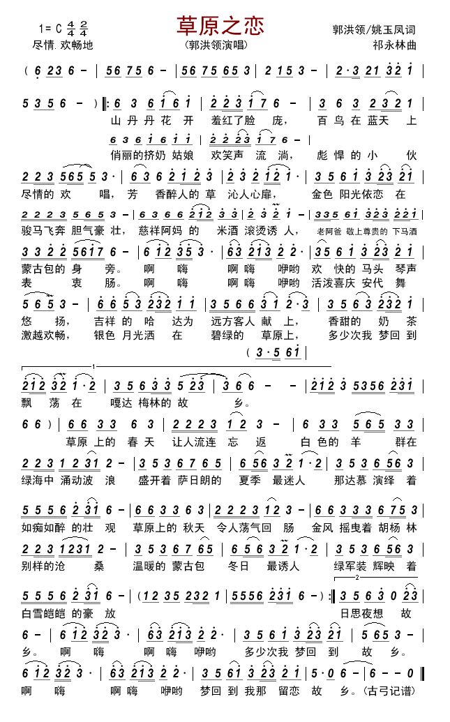 - [歌谱] 草原之恋 郭洪领