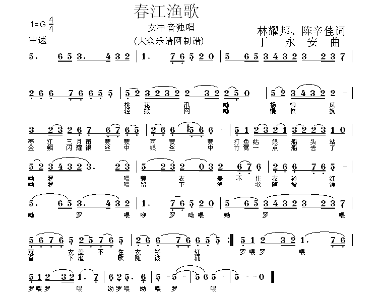- [歌谱] 江上渔歌