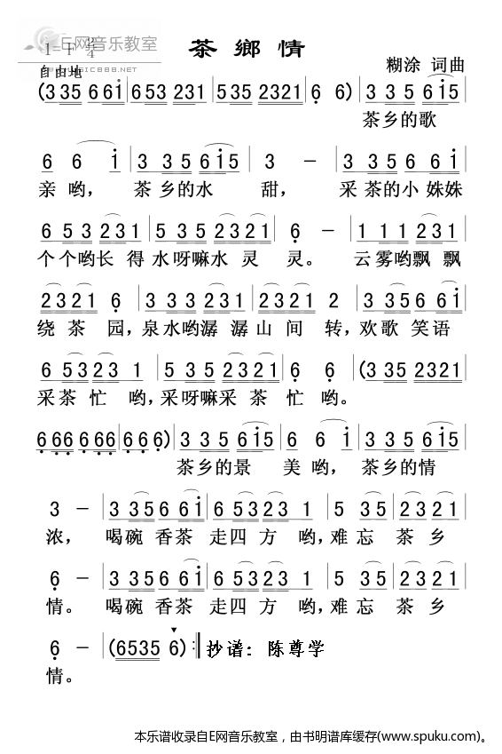 - [歌谱] 悠悠茶乡情 又名 茶月如酒