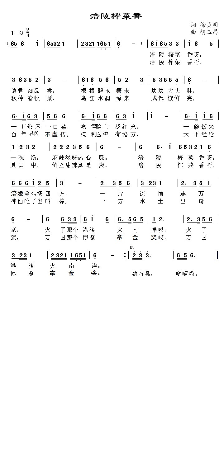 - [歌谱] 涪陵榨菜香