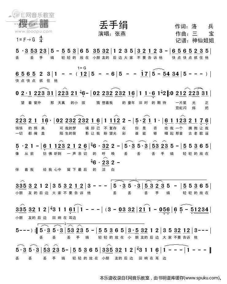 - [歌谱] 丢手绢 张燕