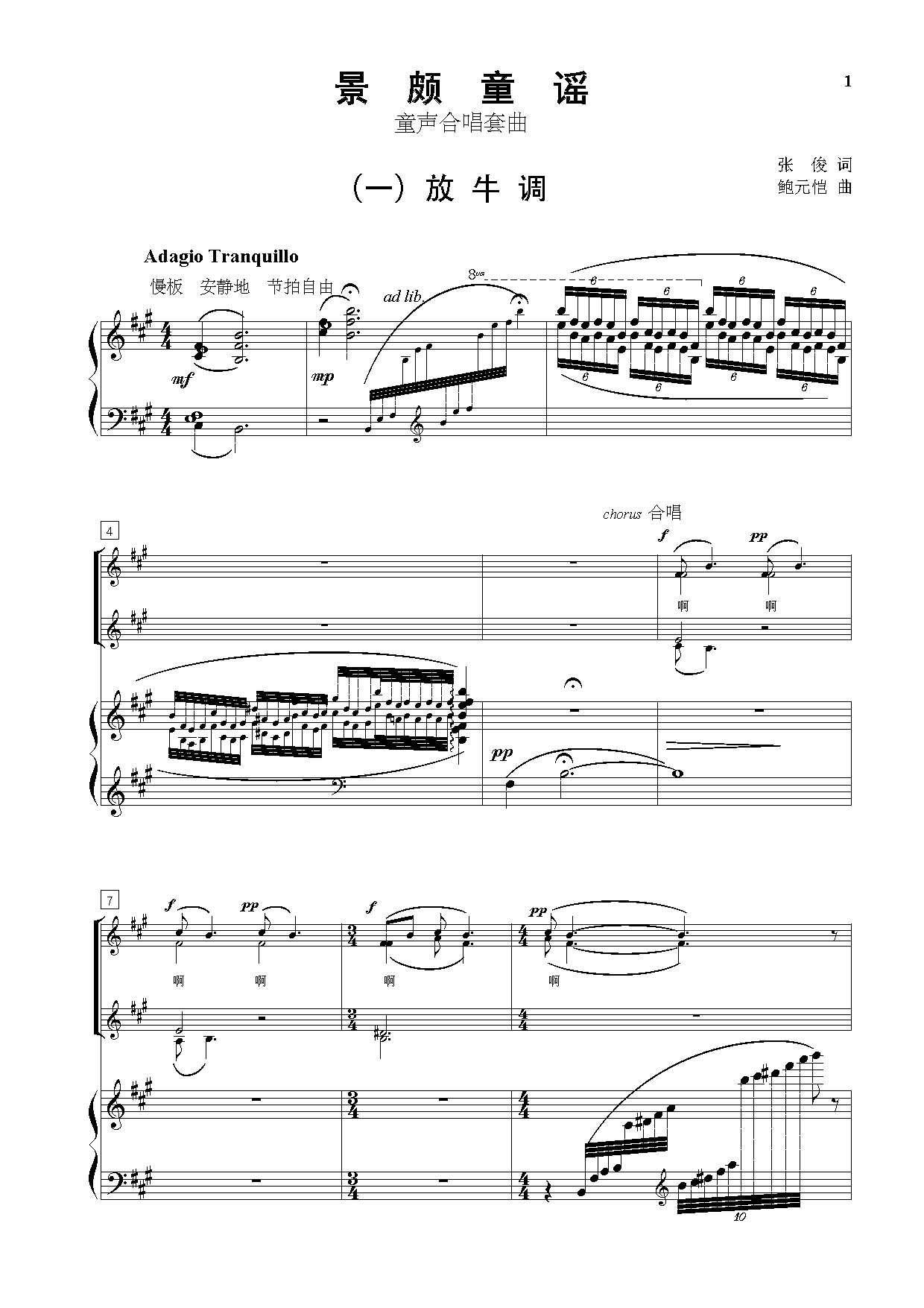 > 景颇童谣 童声合唱套曲 钢伴谱