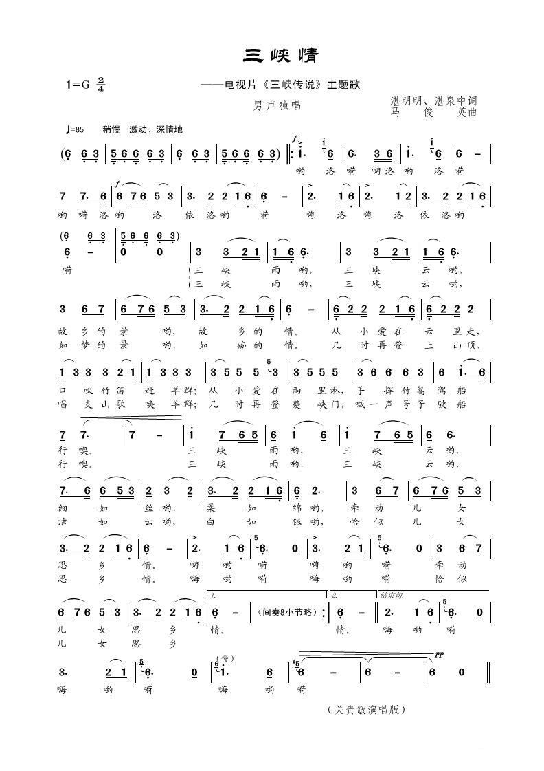 心中的三峡 男声独唱 二声部