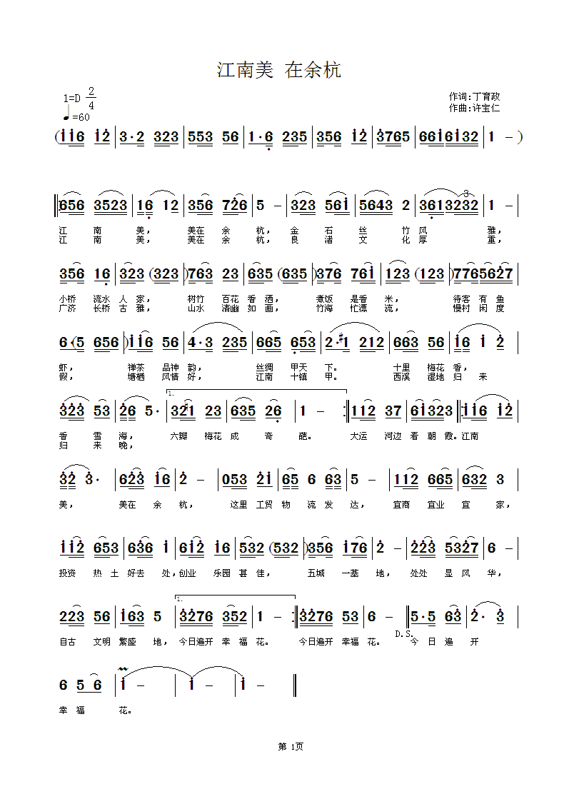 - [歌谱] 江南美 在余杭
