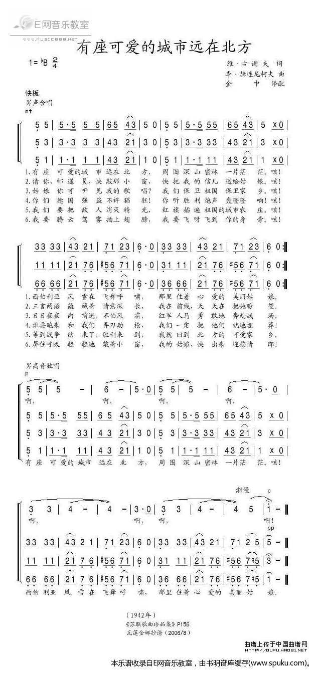 有座可爱的城市远在北方 苏联歌曲 合唱
