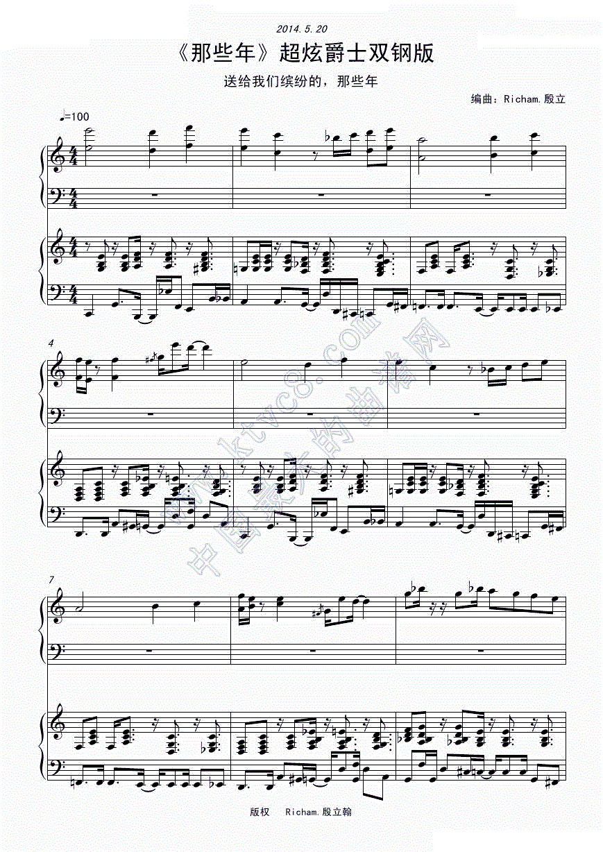 - [钢琴谱] 那些年 弹唱版