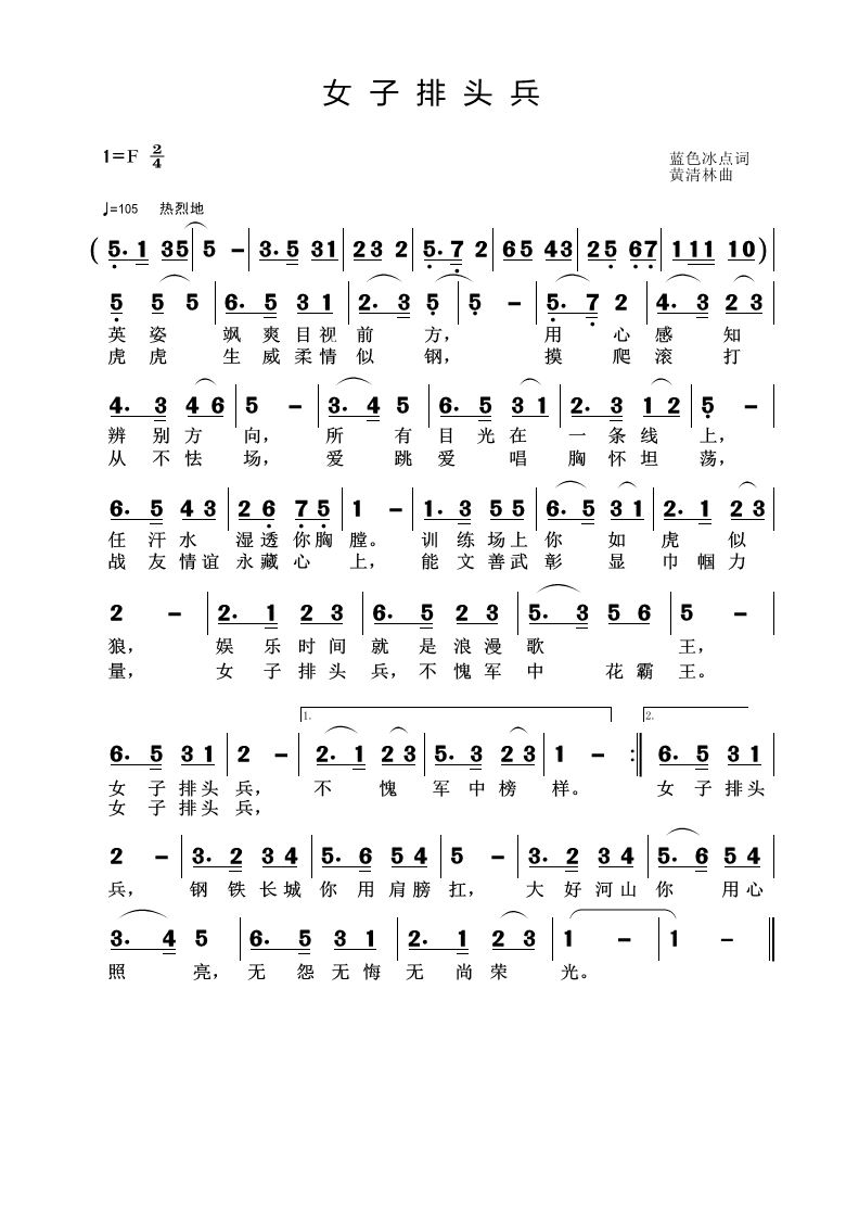 - [歌谱] 春天 我是你的排头兵