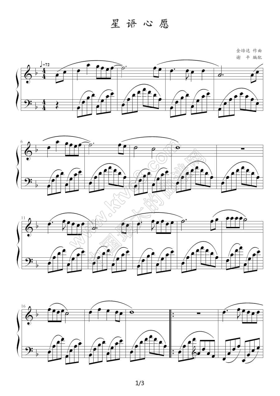 星语心愿 C调指弹谱 编配简单 较完整的版本