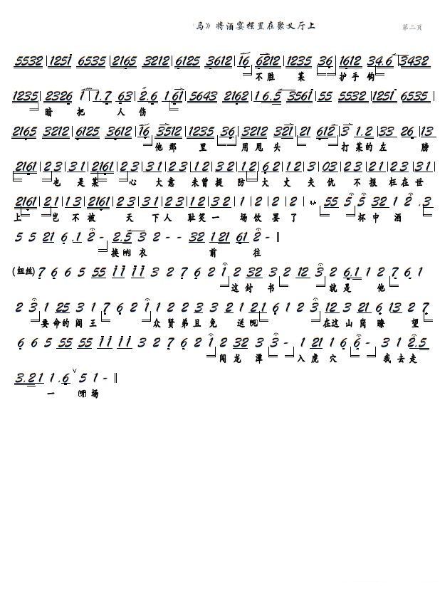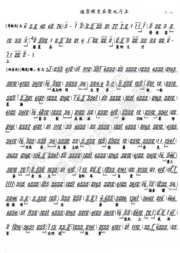 > 将酒宴摆置在聚义厅上 京剧 盗御马 选段 京胡谱