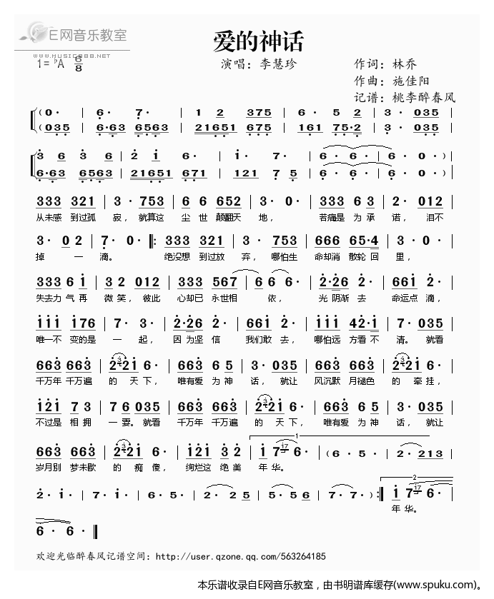 爱的神话 又名 康美之恋 钢琴弹唱谱