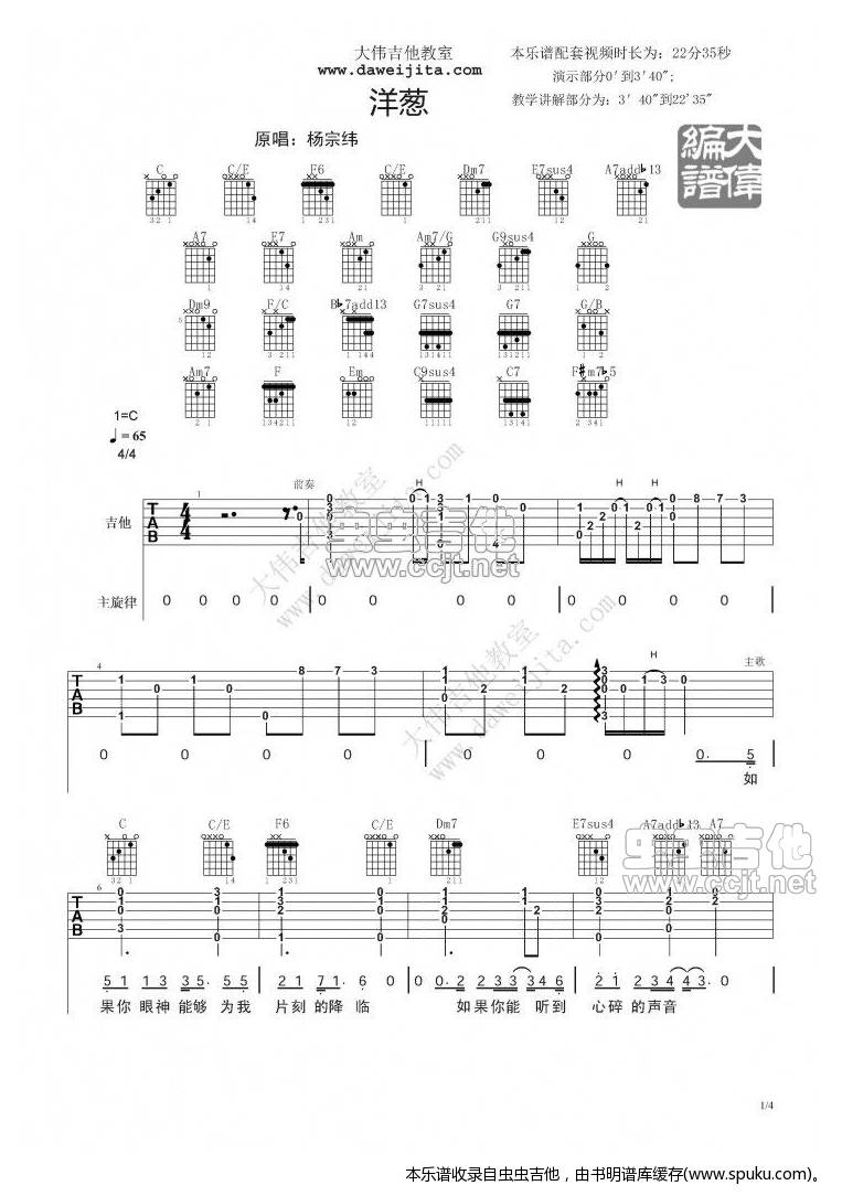 > 大伟吉他 编配杨宗纬 洋葱 吉他弹唱 教学视频 下载