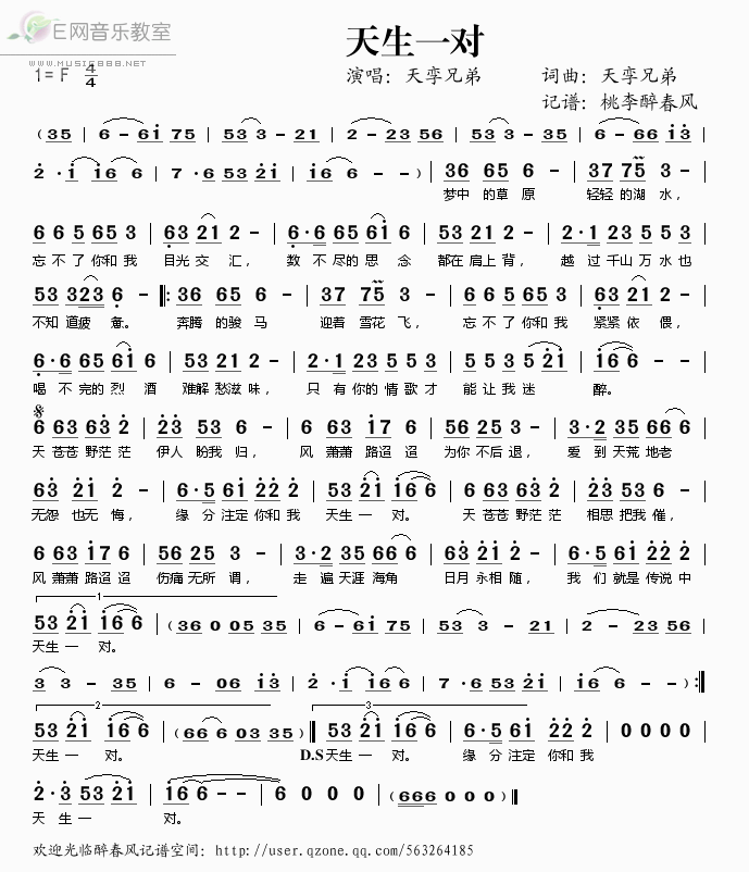 - [歌谱] 天生一对