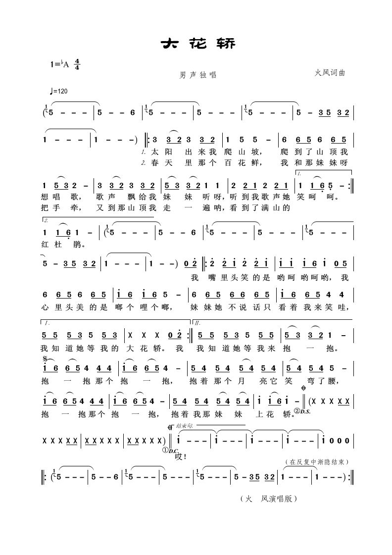 - [歌谱] 大花轿 火 风词曲